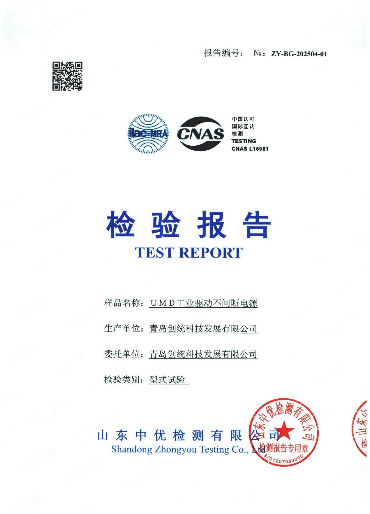 一体化电源、UMD工业驱动不间断电源产品检验报告
