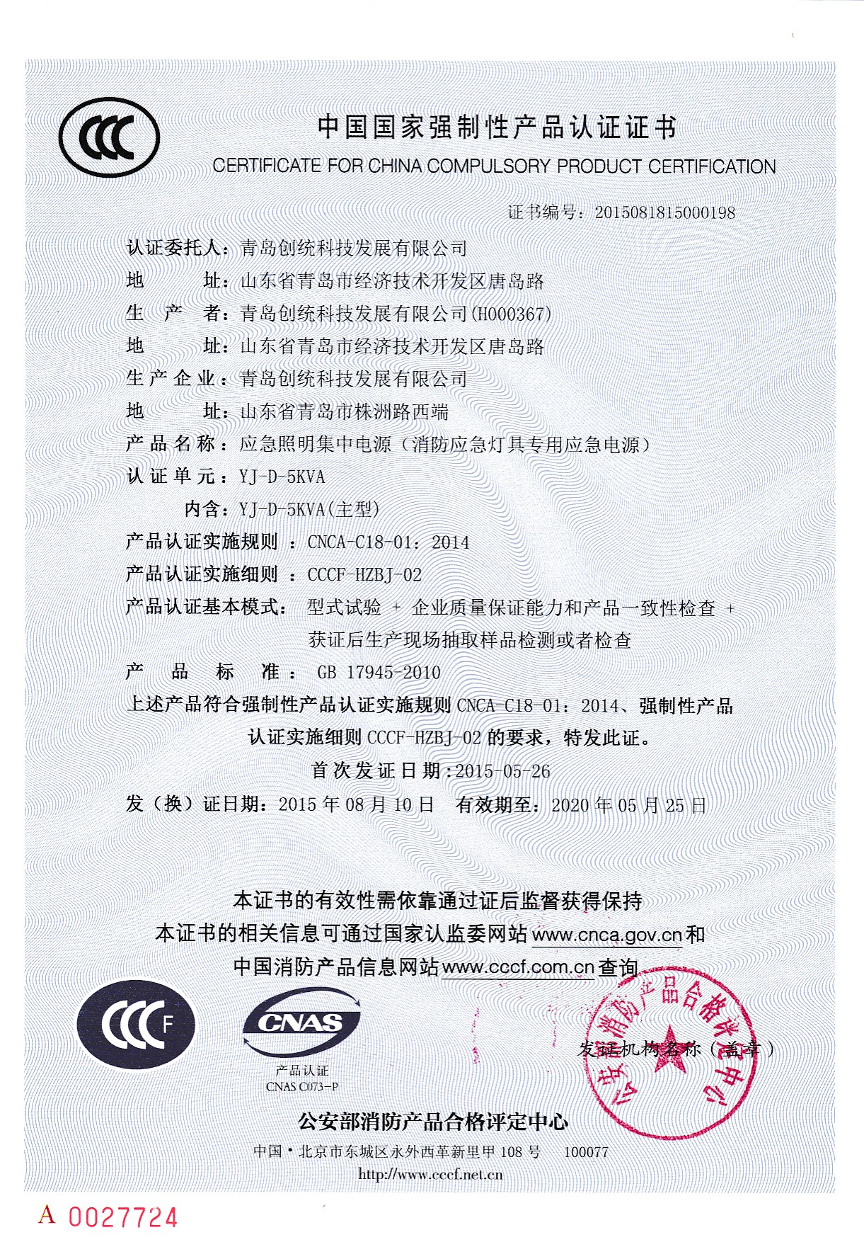 中国国家强制性产品认证证书